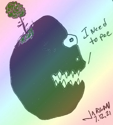 really? It's a long story. Anyway, I drew the strip, but Revan provided the dialog of the, err, whatever that thing is...