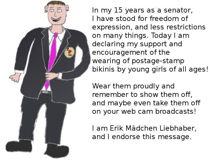 senator erik: on bikinis I hadn't planned on brining Erik back quite yet. But sicPuppi's postage stamp bikini strip was just calling his name...