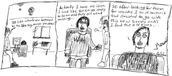 change of plans I was really bummed out about losing the J2K Bug strips. But I figured, I'd best just start from scratch and write some random shit until I found the missing ones (which I did eventually).