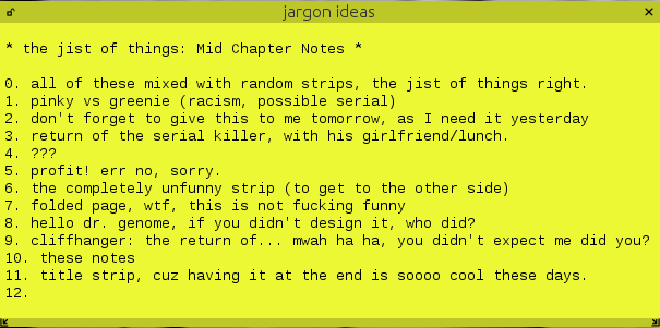 mid-chapter notes These were my working notes that I wrote prior to drawing the pinky-versus-greenie strips.