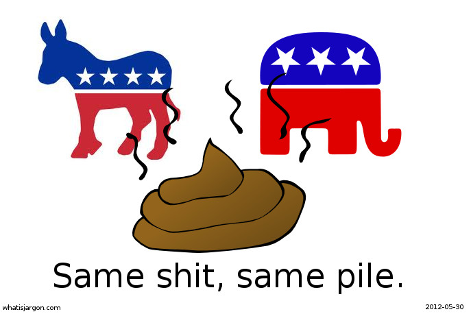 same shit, same pile Replace the logos with whatever political parties you want, it will likely make no difference.