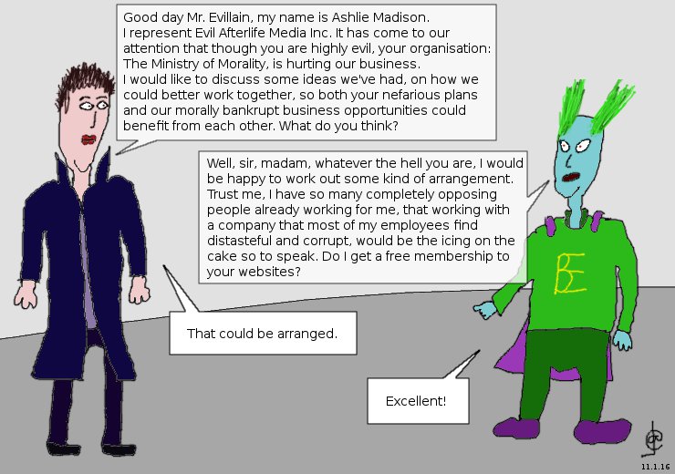 the business of morality The character of Ashlie Madison is entirely fictional. Any resemblance to any person, company or website, real or otherwise, is completely coincidental... *cough*